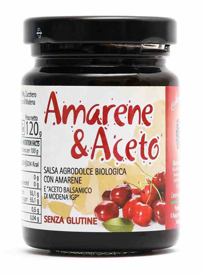 Even when it comes to our Organic Sweet and Sour Black Cherry Sauce & Organic Balsamic Vinegar of Modena I.G.P., quality is guaranteed by the genuineness of the raw materials used. They all come from our territory. The fruit, coming from organic cultivations, is carefully selected. It is then subjected to some slow cooking processes, which reproduce the traditional peasant procedures. The fruit is placed in open boilers over direct heat and gently cooked according to the traditional method. In this way, the fruit retains its flavour. All fruit and only the sugars it naturally contains: that’s our solution. We prefer the simplest recipes and value tradition. We do not use colouring agents, preservatives, thickeners, antioxidants or added sulphites, but we do have one of the highest fruit contents on the market. To make our sauces taste better, we use our best organic Balsamic Vinegar of Modena I.G.P., which creates a wonderful contrast between the acidity and sweetness of the fruit. This combination allows us to guarantee products with unique flavours and aromas that fully satisfy the palate. Our Organic Sweet & Sour Black Cherry Sauce & Organic Balsamic Vinegar of Modena I.G.P. is very popular when served with Parmesan and/or aged pecorino cheese. It is ideal on polenta croutons and is suitable for meats (especially game) and to enhance the delicate flavour of ricotta.